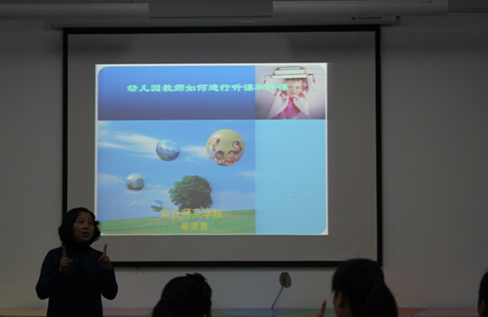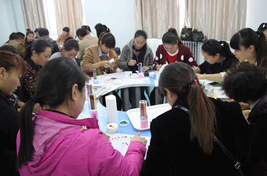 ◇10月26日,我院崔爱善、黄洁等老师在平原路校区实验组团301和317教室以手指画课为例为幼教班国培学员就幼儿教师如何听课和评课做辅导,并教授她们手指画的技巧。