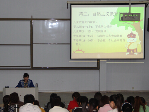 韩院长首先介绍了西方儿童教育哲学的发展历程,以柏拉图、亚里士多德、夸美纽斯、卢梭、福禄倍尔、爱伦·凯、蒙台梭利以及马卡连柯等教育家的幼儿教育哲学思想,作为西方幼儿教育哲学思想渊源期、孕育期、萌芽期、形成期以及科学化时期的发展水平和程度的代表性思想进行分析;我国古代儿童教育哲学的发展,则以贾谊、颜之推、王守仁等人的思想比较具有代表性。在谈到我国20世纪以后的儿童教育哲学的发展时,韩院长重点介绍了蔡元培、陶行知 、陈鹤琴三位著名教育家的幼儿教育哲学思想。