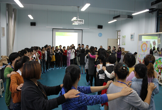 ◇10月22日下午,我院承办的2015国培计划“河南省农村幼儿教师培训团队置换脱产研修项目”幼儿心理游戏活动课在平原路校区实验组团301和317教室进行,我院邵洁、崔爱善、黄洁等老师组织了此次活动。