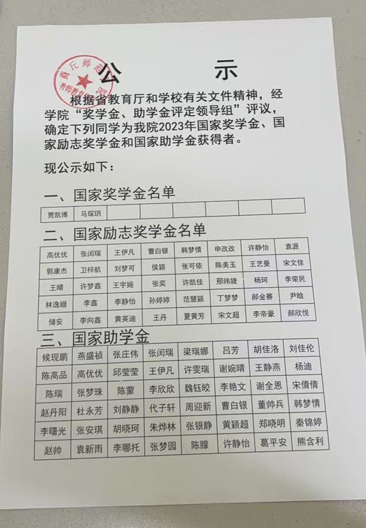 2023年教师教育学院奖助学金公示