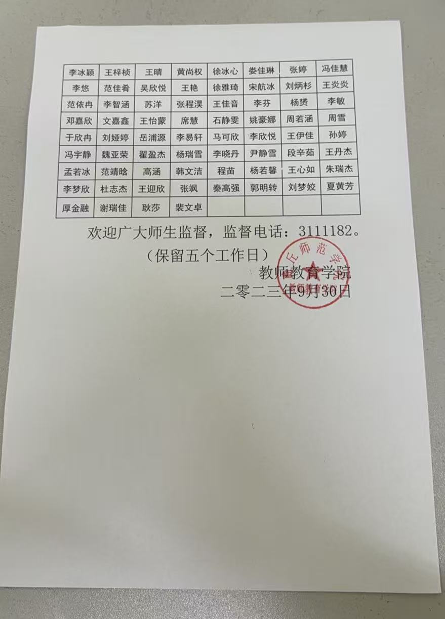 2023年教师教育学院困难学生认定公示
