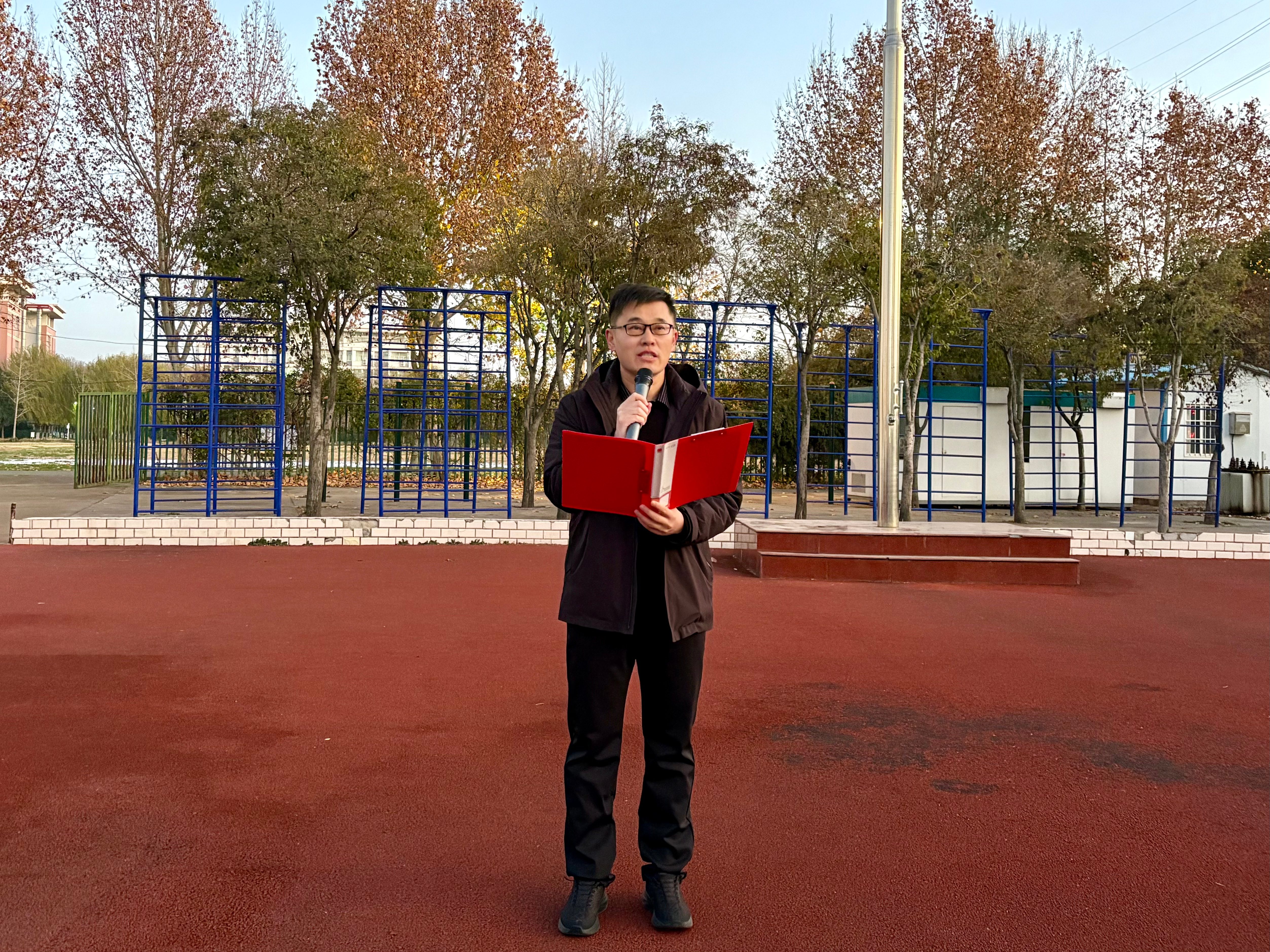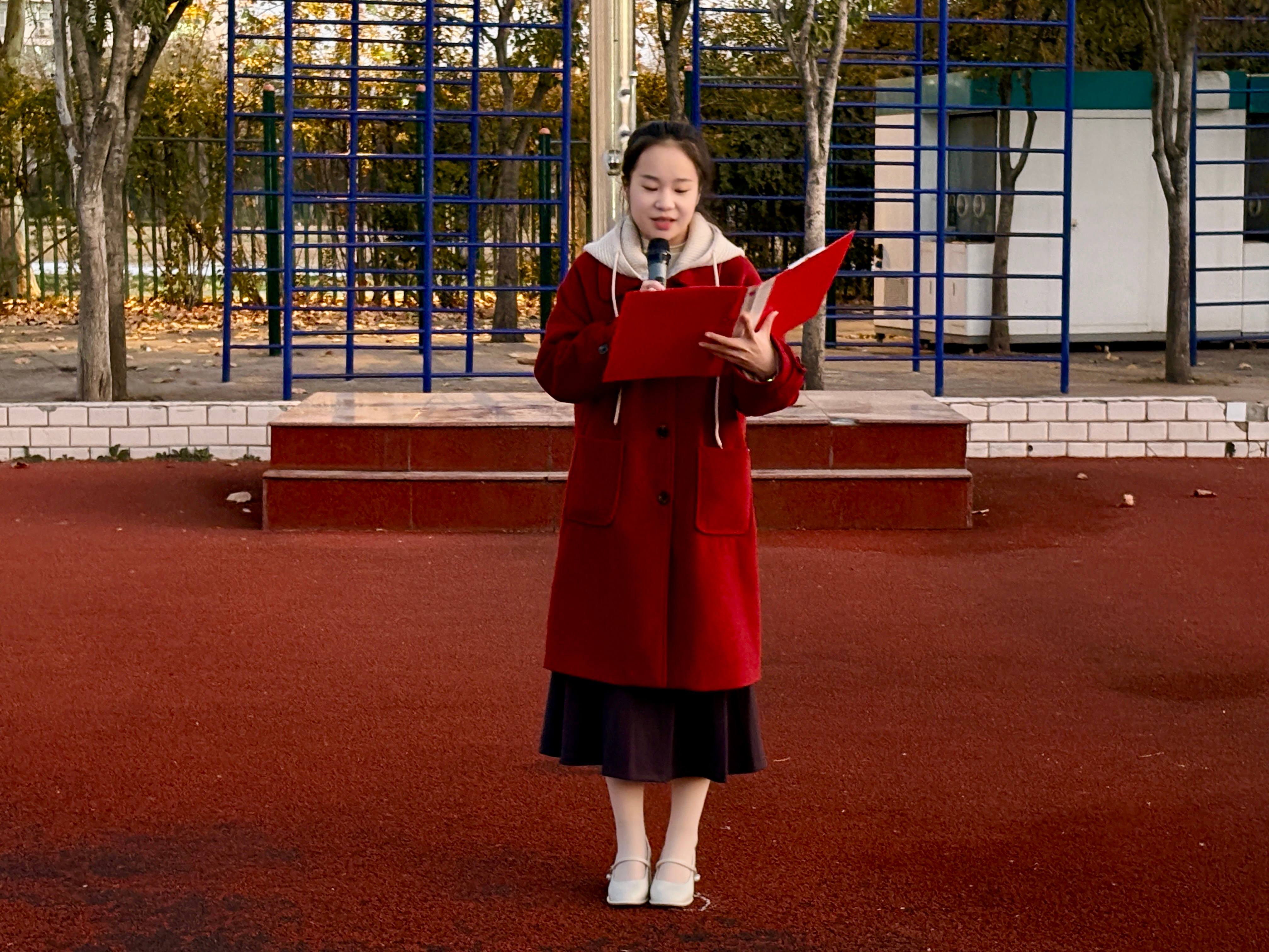 为深入学习贯彻党的二十届四中全会精神,引导全体师范生自觉将个人理想融入党和国家教育事业发展全局,12月15日,教师教育学院于梁园校区体育场举行升旗仪式。学生处副处长袁慧、学院领导班子、辅导员、班主任以及全体学生参加活动。仪式由学院学工办副主任张旖旎主持。