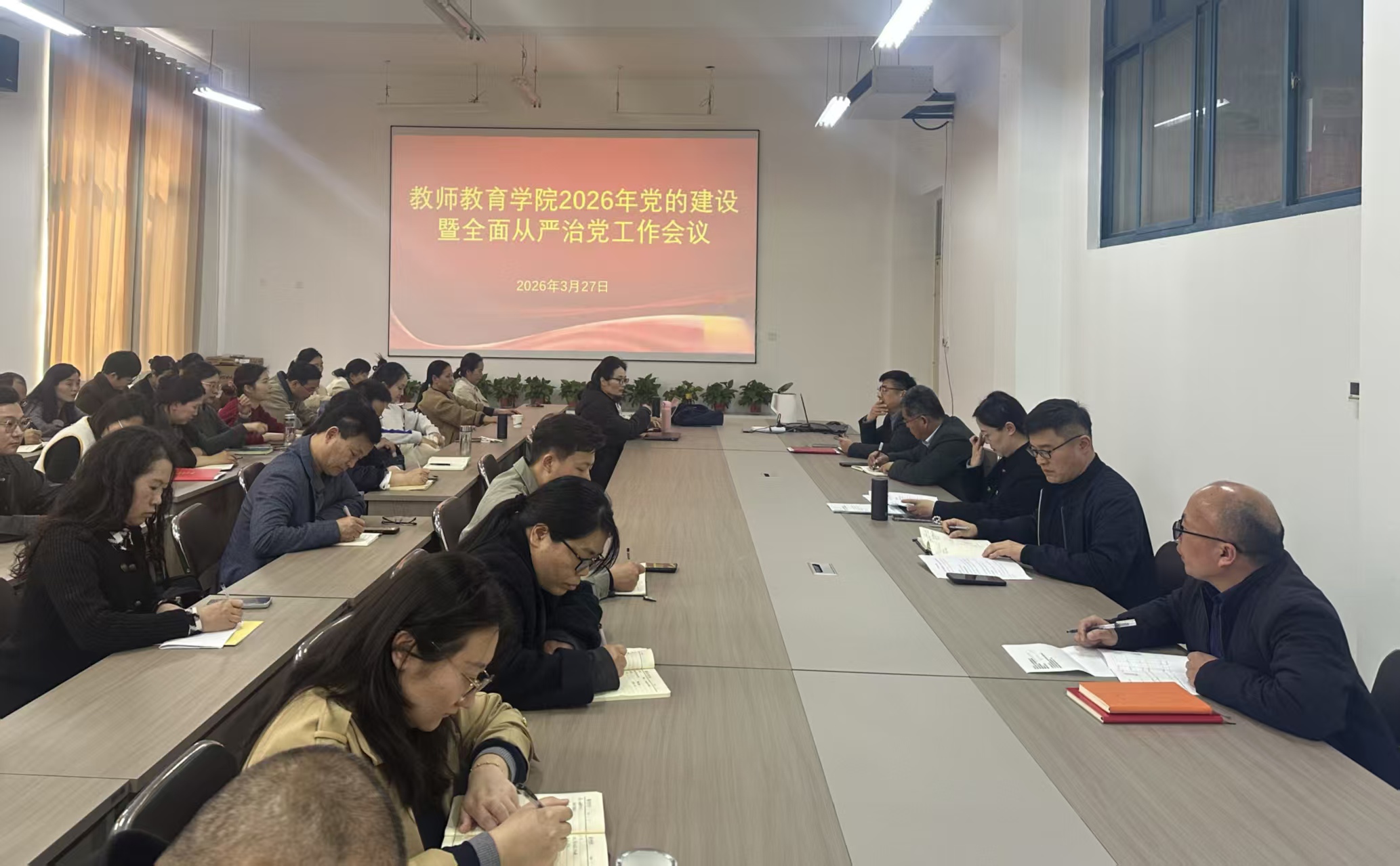 为深入贯彻落实学校党建工作部署,明确2026年度党建工作重点,3月27日,教师教育学院召开2026年度党的建设暨全面从严治党会议。学院党委书记郭宁主持会议,全体教师参加会议。