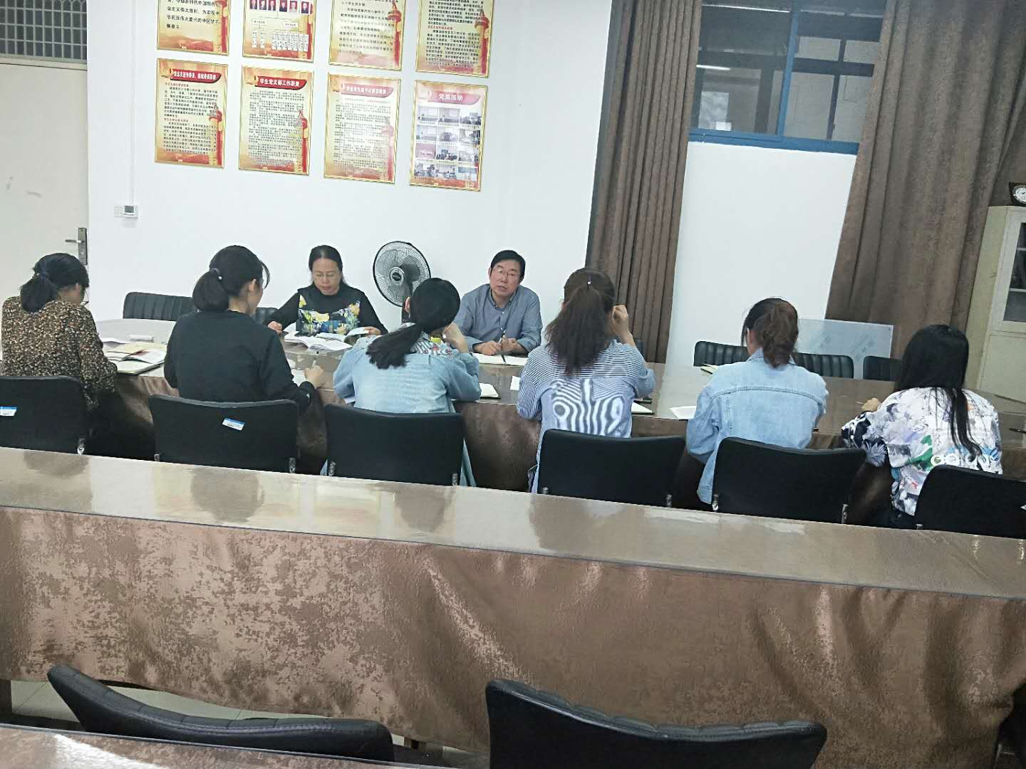 肖书记倡议各年级辅导员带领学生分年级分班集体学习,并开展班级主题班会、知识竞赛等活动,把思想教育工作贯穿教育教学全过程。
