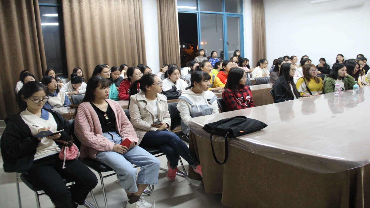 10月10日19:00,我院于梁园校区实验组团楼203教室举行了毕业生招教考试经验交流会。我院党总支副书记肖爱芝,团总支书记董若颖莅临现场, 2014级学前教育专业毕业生郭萌同学担任本次交流会的主讲人。