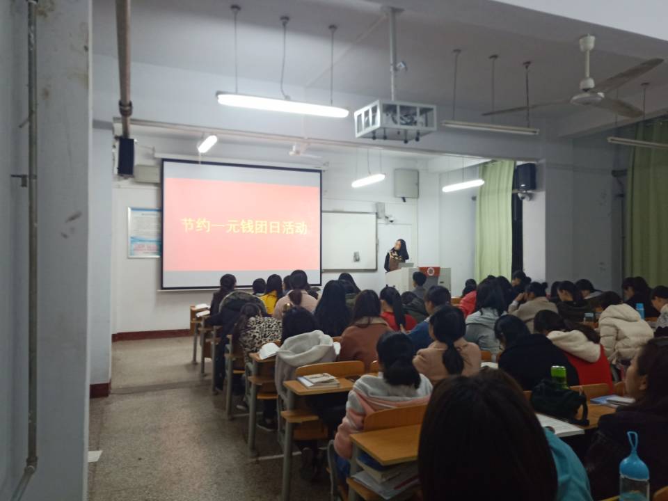 10月19日12:30,我院于睢阳校区1号教学楼107教室成功举办“节约一分钱,关爱贫困生”主题团日活动,我院18级全体同学积极参加了本次活动,吴乾坤担任本次活动的主持人。