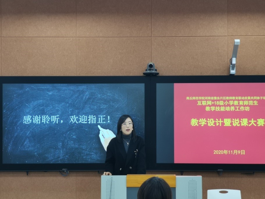 “不积跬步,无以至千里”,为了进一步提升师范生专业能力,深化专业所学教育教学理论。2020年11月9日晚,教师教育学院在汉梁楼123教室举行了互联网+师范生教学技能培养小学数学工作坊教学设计暨说课大赛。莅临本次活动的有在百忙之中牺牲个人时间的商丘市小学数学名师工作室的坊主师傅们与学院领导老师,还有小学数学坊的全体学员们。