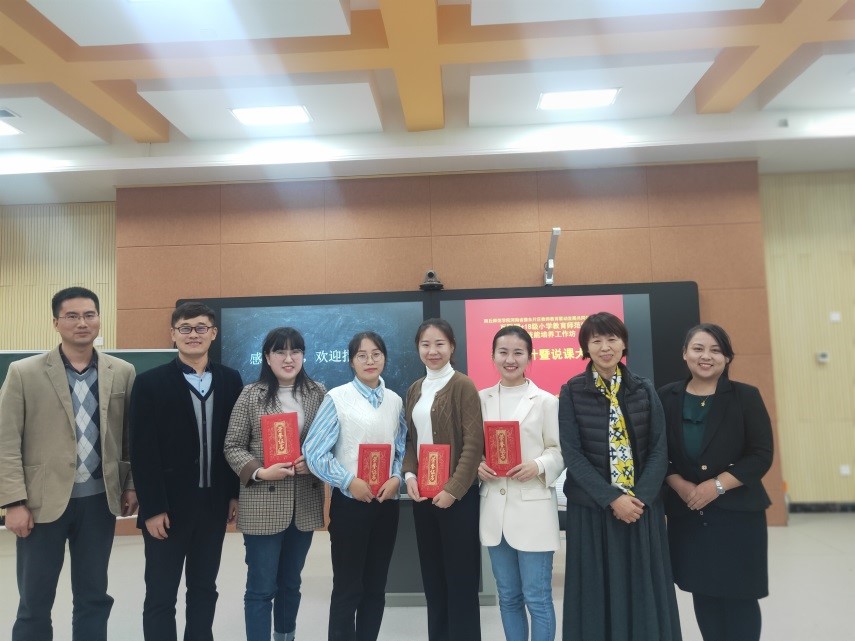 时间流逝,选手们依次上台展示了自己的说课内容。随着紧张、激动的比赛环节的结束,迎来了点评环节。余静老师为参赛选手们进行了细致且精彩的点评,肯定了优点,指出了不足。接下来,迎来了颁奖环节,由坊主老师们及学院领导给获奖选手们颁发了证书并合影留念。最后,在韦老师富有深意的总结中本次比赛圆满结束。