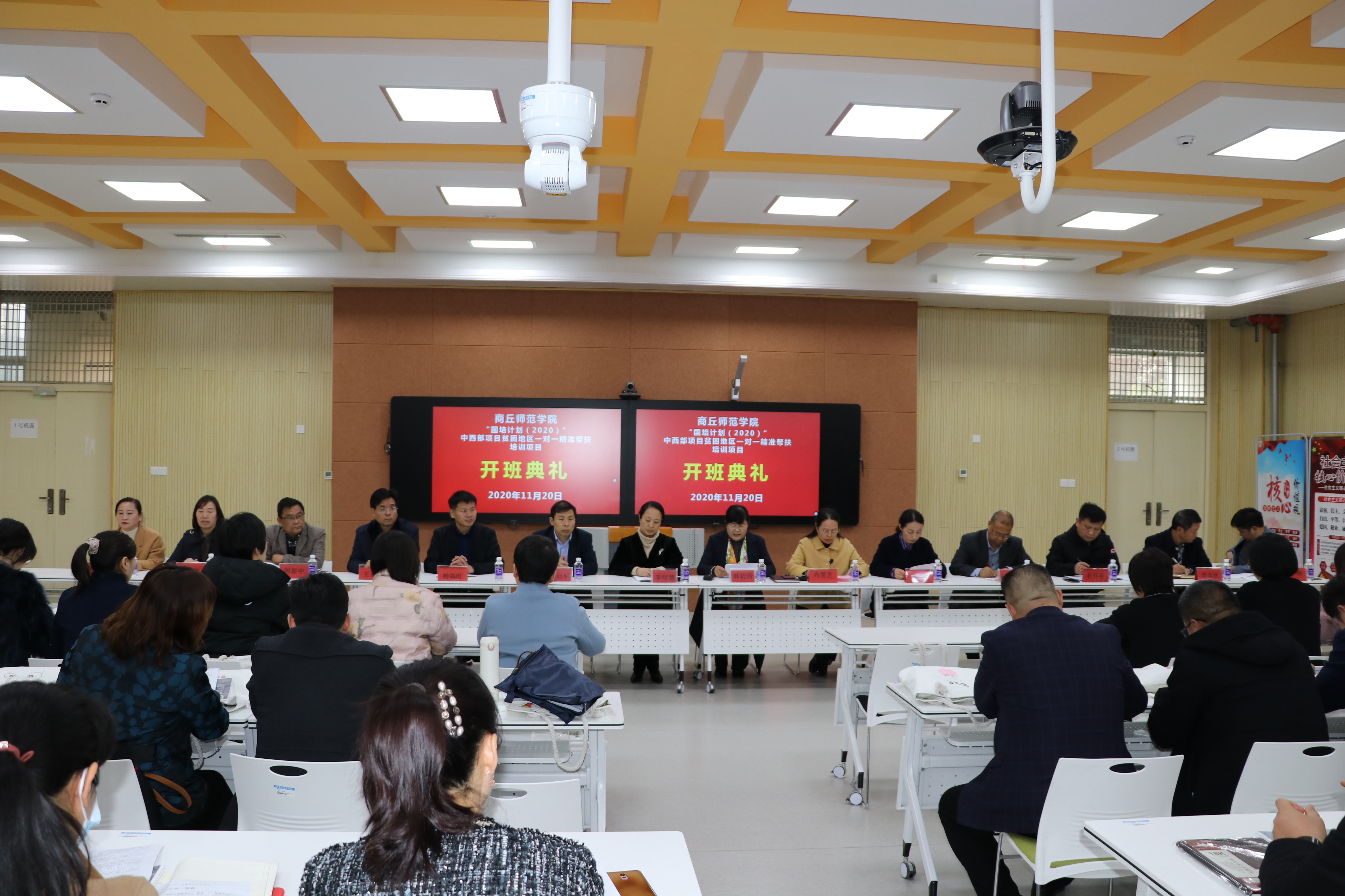 11月20日,教师教育学院“国培计划(2020)”中西部项目贫困地区一对一精准帮扶对接会暨培训开班典礼在我校梁园校区如期举行并取得圆满成功。商丘市教体局教师教育科科长李明慧、教师教育学院院长韩桂玲、驻马店市新蔡县及商丘市柘城县、夏邑县、虞城县、宁陵县教体局领导出席典礼仪式,商丘市第一实验小学、商丘市文化路小学、商丘市前进小学,商丘市第二实验小学、商丘市实验小学的校长与专家、被帮扶小学校领导及教师代表、教师教育学院项目相关人员及骨干教师共八十余人参加活动。教师教育学院党总支副书记肖爱芝主持仪式。