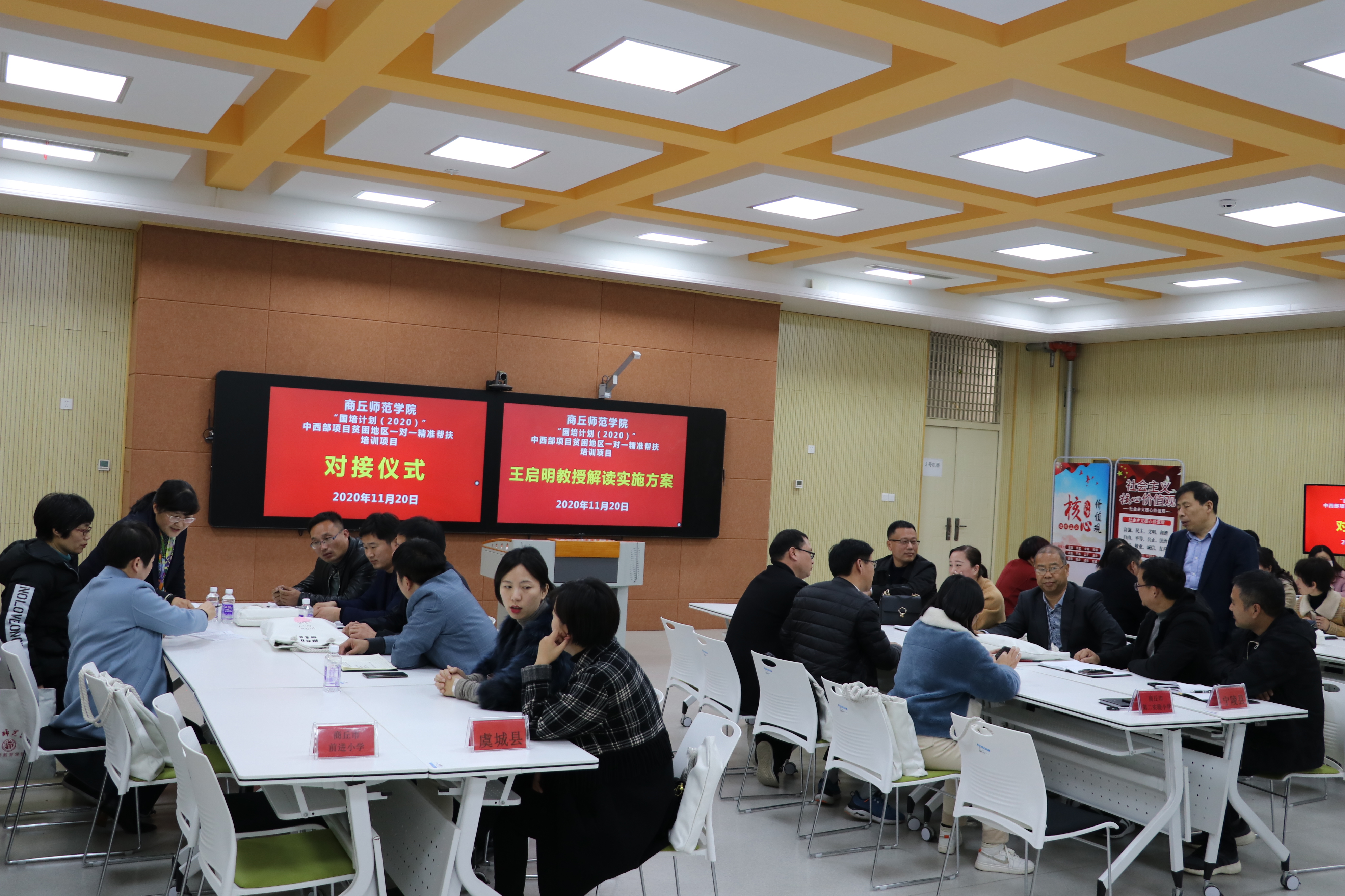 最后阶段,在市县两级教体局领导的见证下,我校培训团队精心组织了商丘市各示范小学和对应县城的被帮扶小学的领导、教师们的对接仪式。他们分别合影留念后又围坐在一起,双方坦诚沟通,寻找问题和切入点,认真对接下一阶段的具体工作安排。