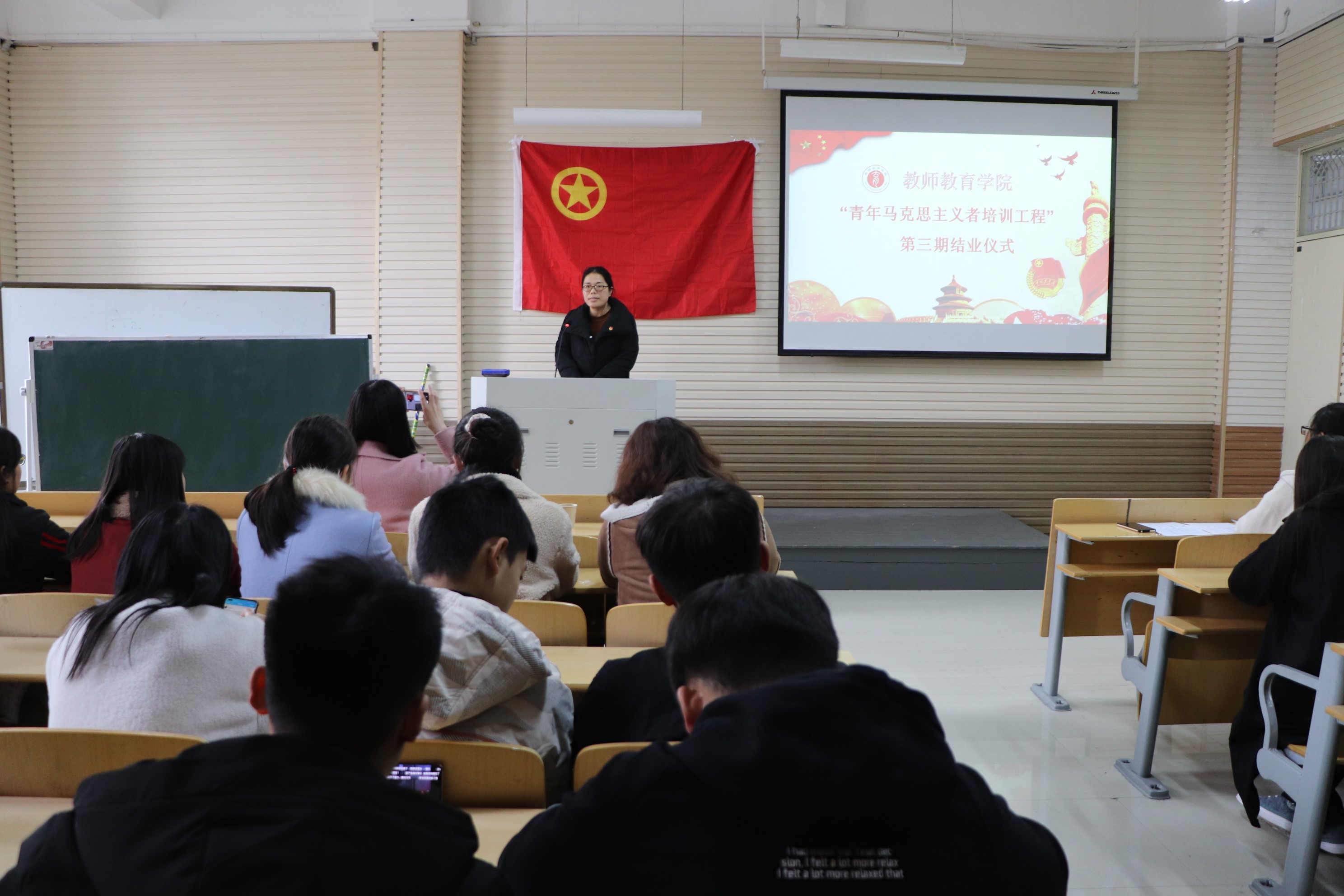 为了培养教育好党员一代,提高当代大学生的政治素养。2020年11月27日中午12:30,教师教育学院于梁园校区实验组团楼310教室举办青马工程结业仪式。我院党总支副书记肖爱芝、团总支书记董若颖以及学生工作办公室主任李秀勤出席了本次会议,计敏同学担任此次活动的主持人。