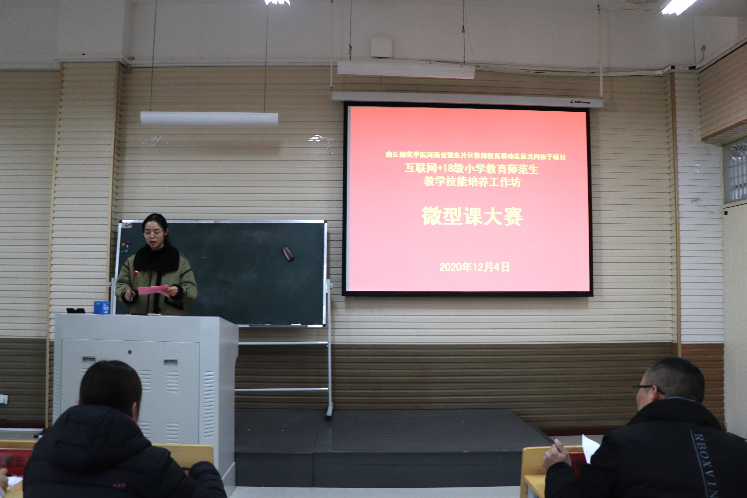 为进一步推进教育现代化生力军的快速成长,同时提升我院18级小学教育(全科教师)专业学生的教学技能,教师教育学院于2020年12月4日下午14:00在梁园校区汉梁楼310教师举办18级小学教育师范生微型课大赛。小学语文工作坊各位坊主师傅们作为本次比赛的评委,教师教育学院院长井祥贵老师、田晶老师、张焕老师等出席本次活动,本场活动由陈舒畅同学主持。