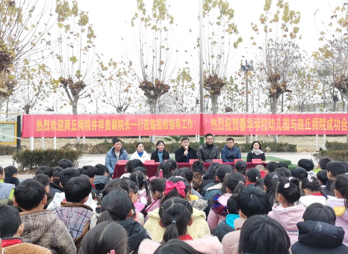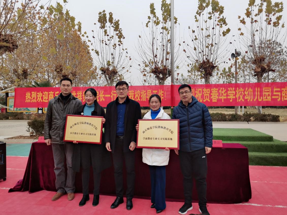 2020年12月8日上午,商丘师范学院教师教育学院与商丘市睢阳区包公庙乡春华小学共建的小学教育、学前教育专业实习实践基地授牌仪式在春华学校校园的操场举行,并取得了圆满成功。副院长井祥贵、学前教育系主任李战营、初等教育教系副主任丁楠、心理学教研室席美云老师参加了本次活动。