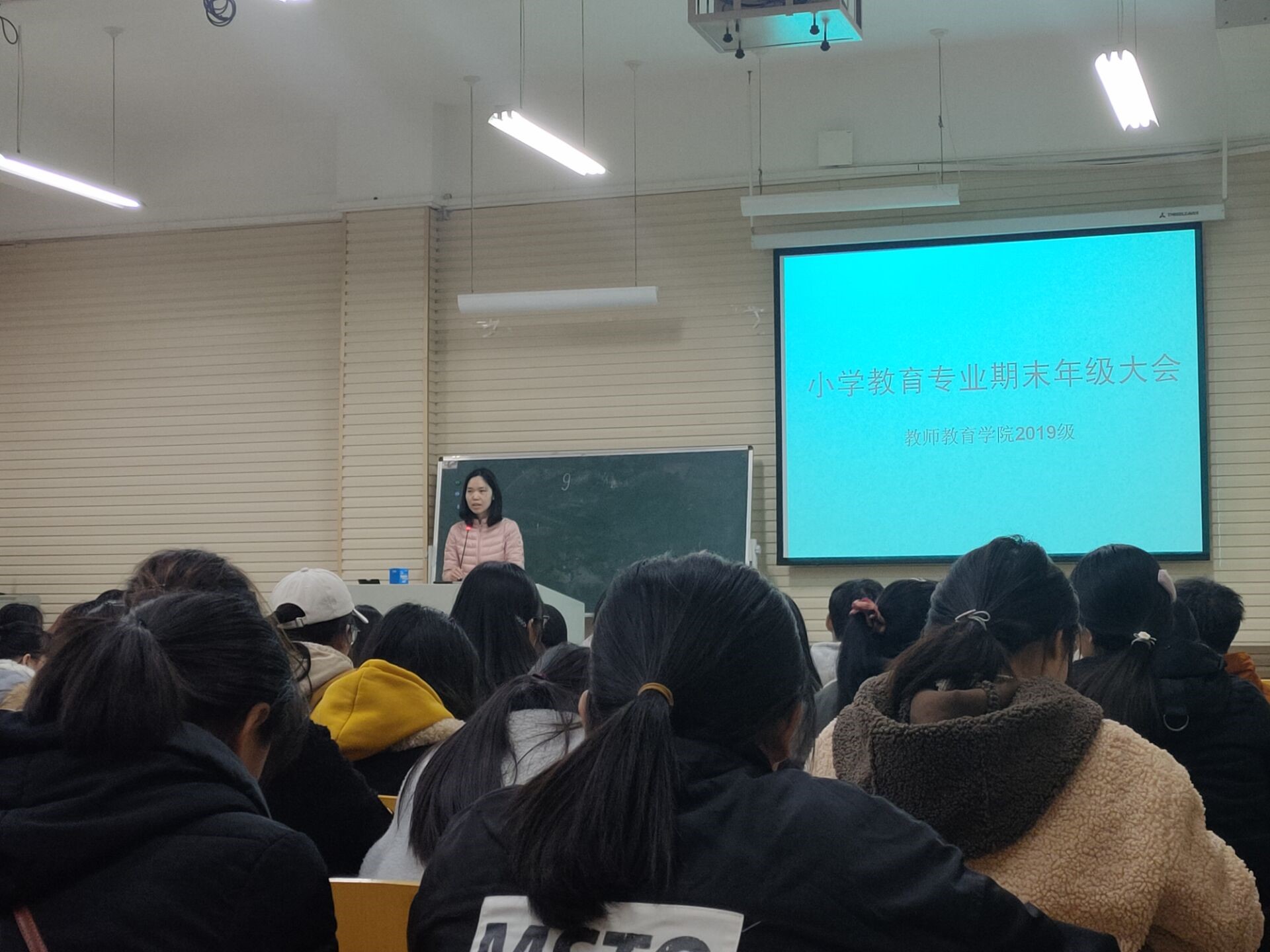 2020年12月04日,教师教育学院2019级小学教育的同学们,在辅导员李秀勤的主持下在汉梁楼310召开了期末年级会议。